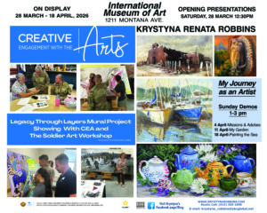 Join local artist Krystyna Renata Robbins in her solo show at the IMoA. The show opens Saturday, March 28 from 12:30pm – 4pm. More information to come.