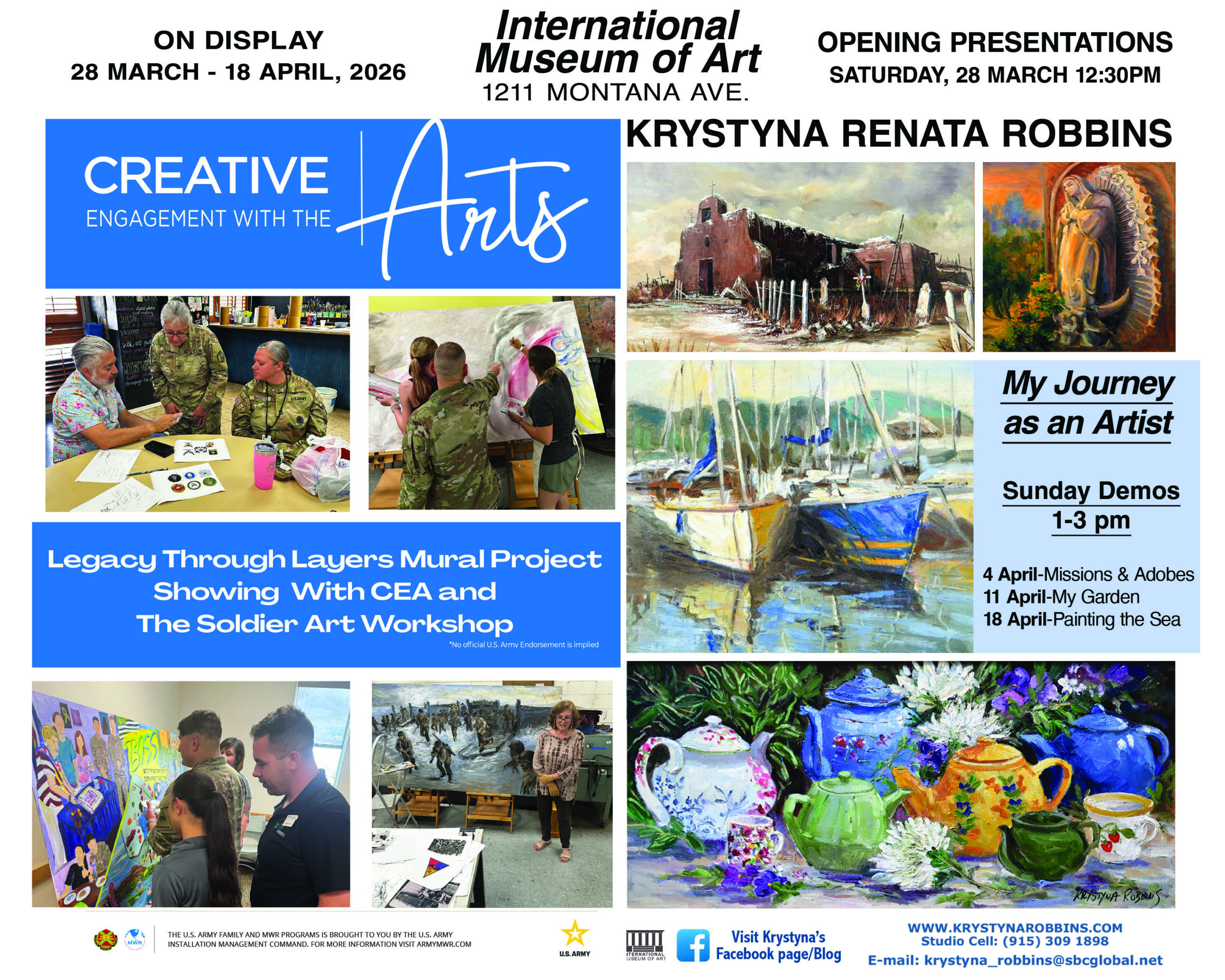 For Krystyna’s Exhibit, she will also be doing 3 Demos on Sundays from 1pm – 3pm: