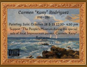 📍Support “The People’s Museum” during a special sale of local Impressionist painter, Carmen “Kany” Rodriguez on Saturday, October 18 and Sunday October 19 from 12:30 pm-4:30 pm.